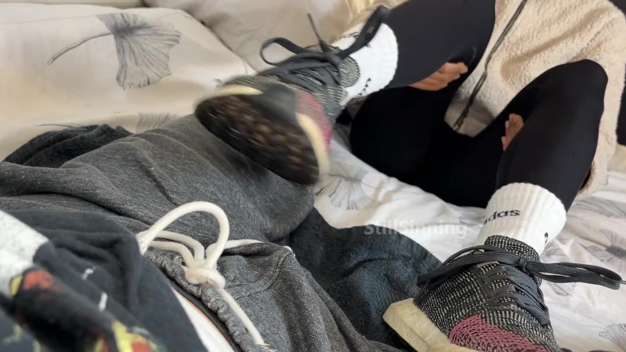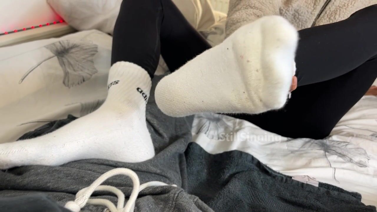 College Babe gives SOCKJOB in SWEATY Adidas ????