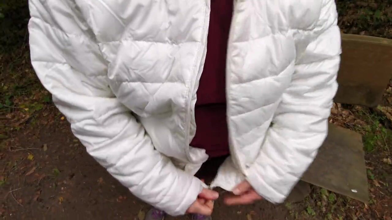 Naked tits play sitting on a bench